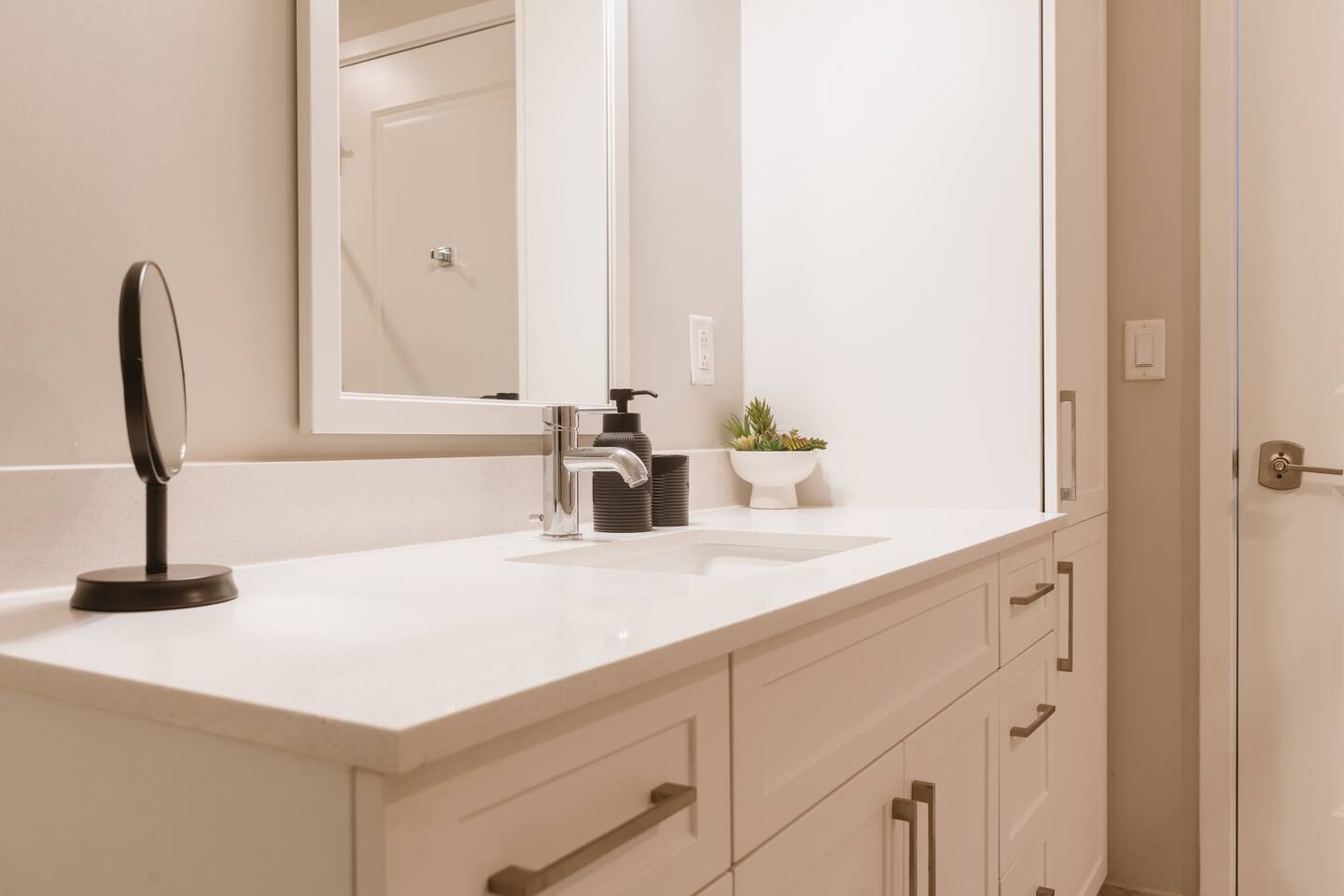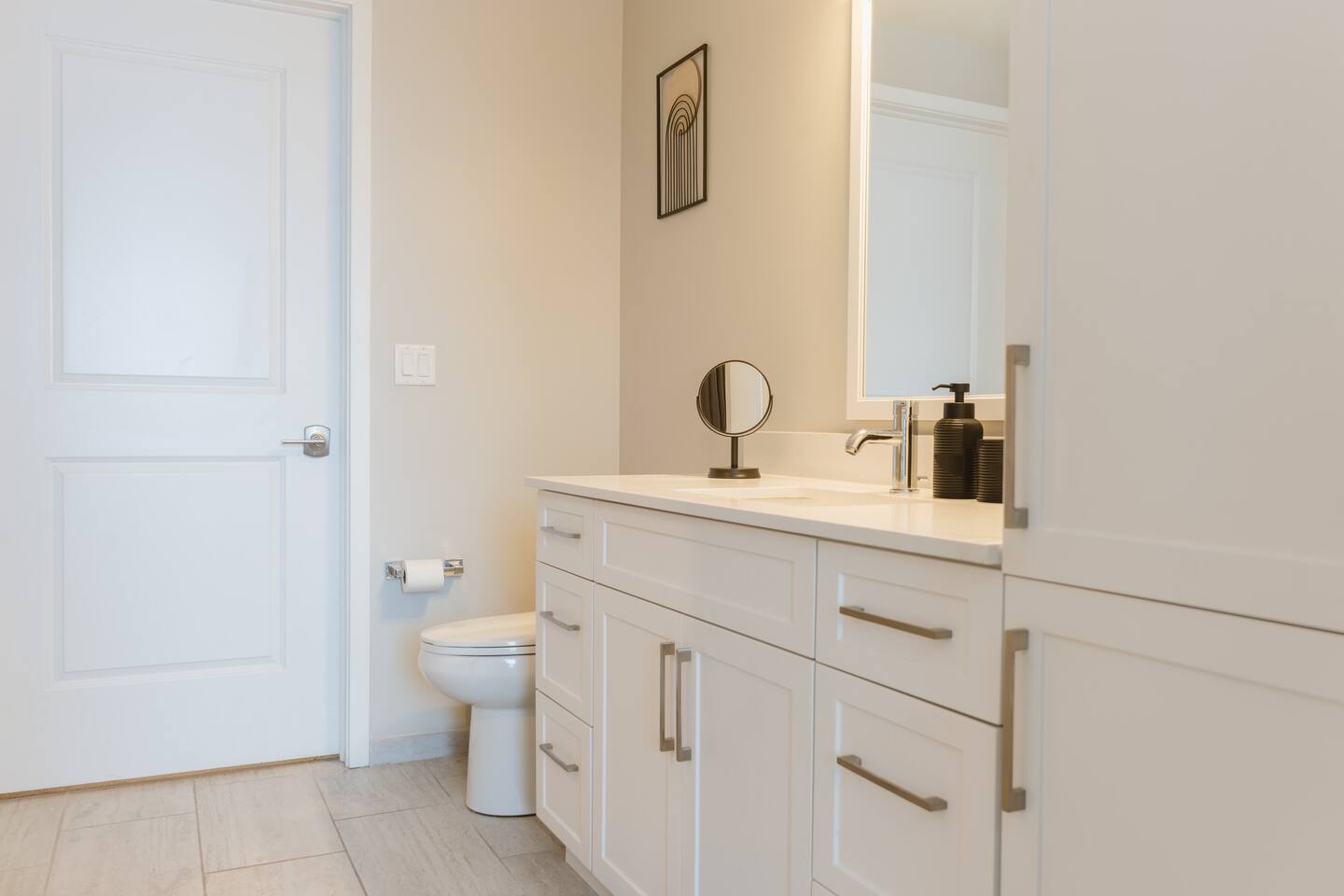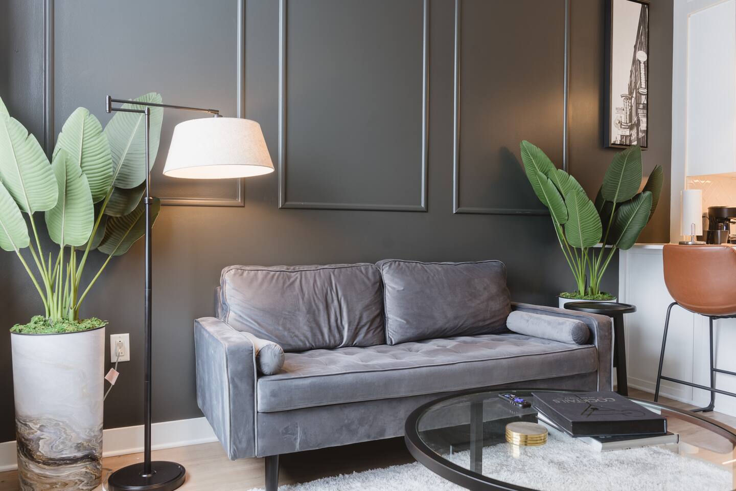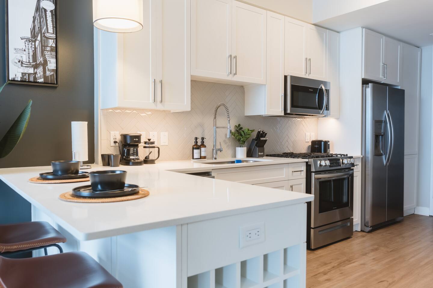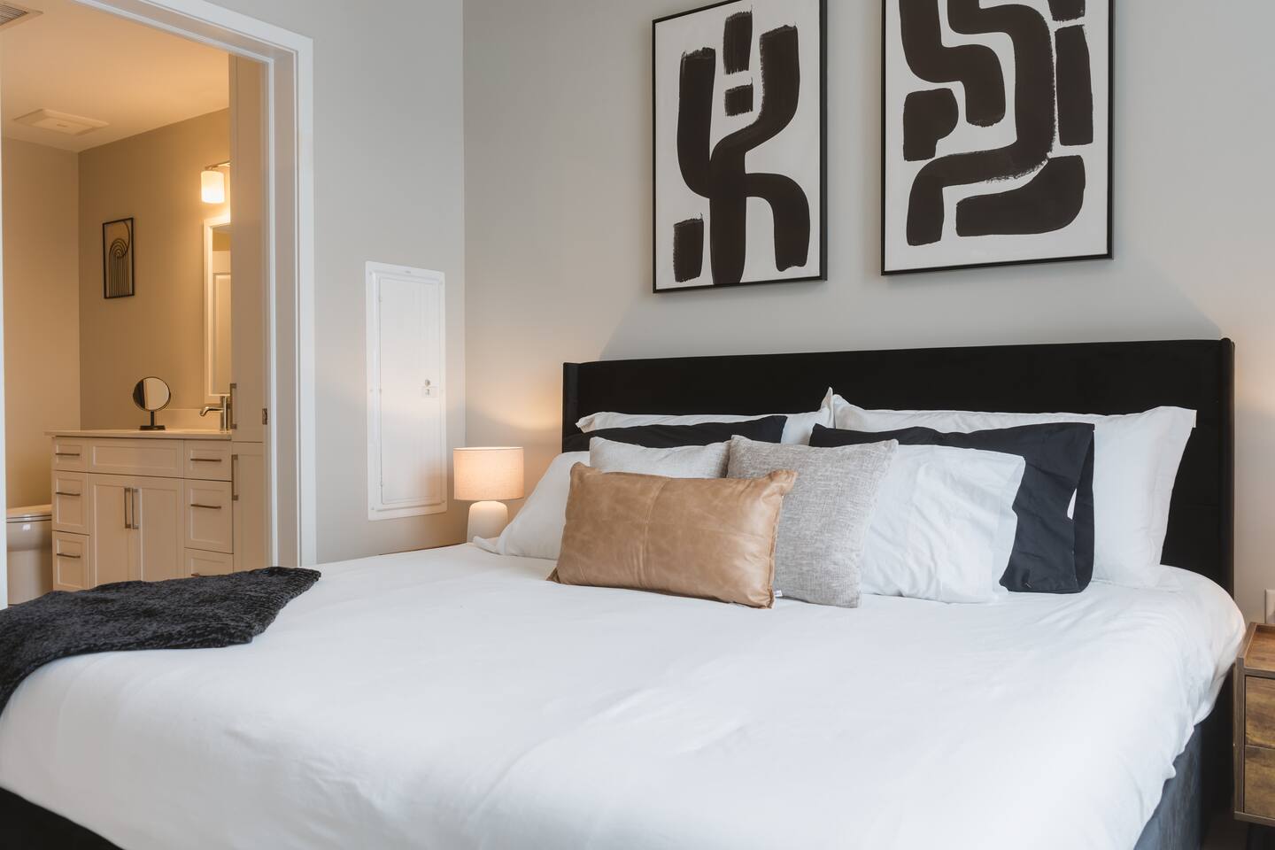 This studio apartment is designed with the modern traveler in mind, offering a seamless blend of comfort, style, and convenience. Whether you're here for work, leisure, or anything in between. The Building Located in The Gulch neighborhood, this high-rise apartment building offers the perfect combination of sophistication and modern comfort with premier amenities in an unparalleled location. The building boasts 24/7 concierge service and security, ensuring a safe and secure living experience. Kitchen As you enter, you're greeted by an urban mudroom and a fully equipped modern kitchen. Here you'll find everything you need from stainless steel appliances, a full size refrigerator, a gas range stove to a microwave. In the kitchen area, you’ll also find a large shelved pantry and the W/D unit. The coffee maker, toaster, blender, and water kettle sit alongside the countertops ready for any culinary needs. The kitchen is stocked with cookware, plate ware, and utensils. Perfect for preparing and enjoying meals at the bar top. Living Room The space flows seamlessly into a bright and inviting living room, complete with 11ft. floor-to ceiling windows with roller-shade coverings, a comfortable plush sofa that entices you to relax and unwind, and a Roku smart TV for streaming your favorite shows or watching a movie. Adjacent to the living area is a built-in desk, perfect for those who need a quiet spot to work or study with high-speed Wi-Fi access. Bedroom The bedroom is your private oasis, featuring a comfortable King-sized bed with premium bedding and soft pillows, ensuring a peaceful night's sleep. Large 11ft. windows fill the room with natural light, while roller shade curtains provide privacy and tranquility. Elegant bedside nightstands with soft dimmable lamps offer a touch of warmth and a Roku smart TV for streaming TV shows or watching a movie in bed. Bathroom The bathroom features modern fixtures, a walk-in shower and soft towels to create a spa-like environment. Closet The walk-in closet has ample space and a dresser to store your belongings, making it easy to settle in and feel at home.