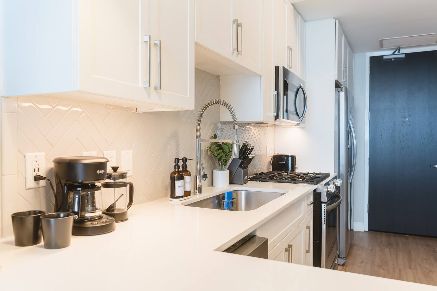 During your stay, you'll enjoy full access to the apartment and the building's exceptional amenities, including: 26th-Floor Sky Lounge — Breathtaking skyline views, perfect for relaxing or working remotely Resort-Style Pool — 70-foot lap pool with private cabanas and sun deck Fitness Center & Spin Studio — Fully equipped gym, spin bikes, and outdoor yoga lawn Dog Run & Pet Spa — Onsite dog park with agility equipment and a pet washing station Outdoor Fire Pit & Grilling Areas — Ideal for evening gatherings or casual meals Whole Foods Market (Onsite) — Located on the ground floor for ultimate convenience Smart Package Lockers — Secure 24/7 package and dry cleaning pickup Secure Garage Parking — Available upon request (subject to availability) EV Charging Stations — Onsite for electric vehicles 24-Hour Concierge — Assistance, security, and peace of mind around the clock Guests will also have access to the main lobby, elevators, mailroom, and any designated business or lounge areas offered within the community.