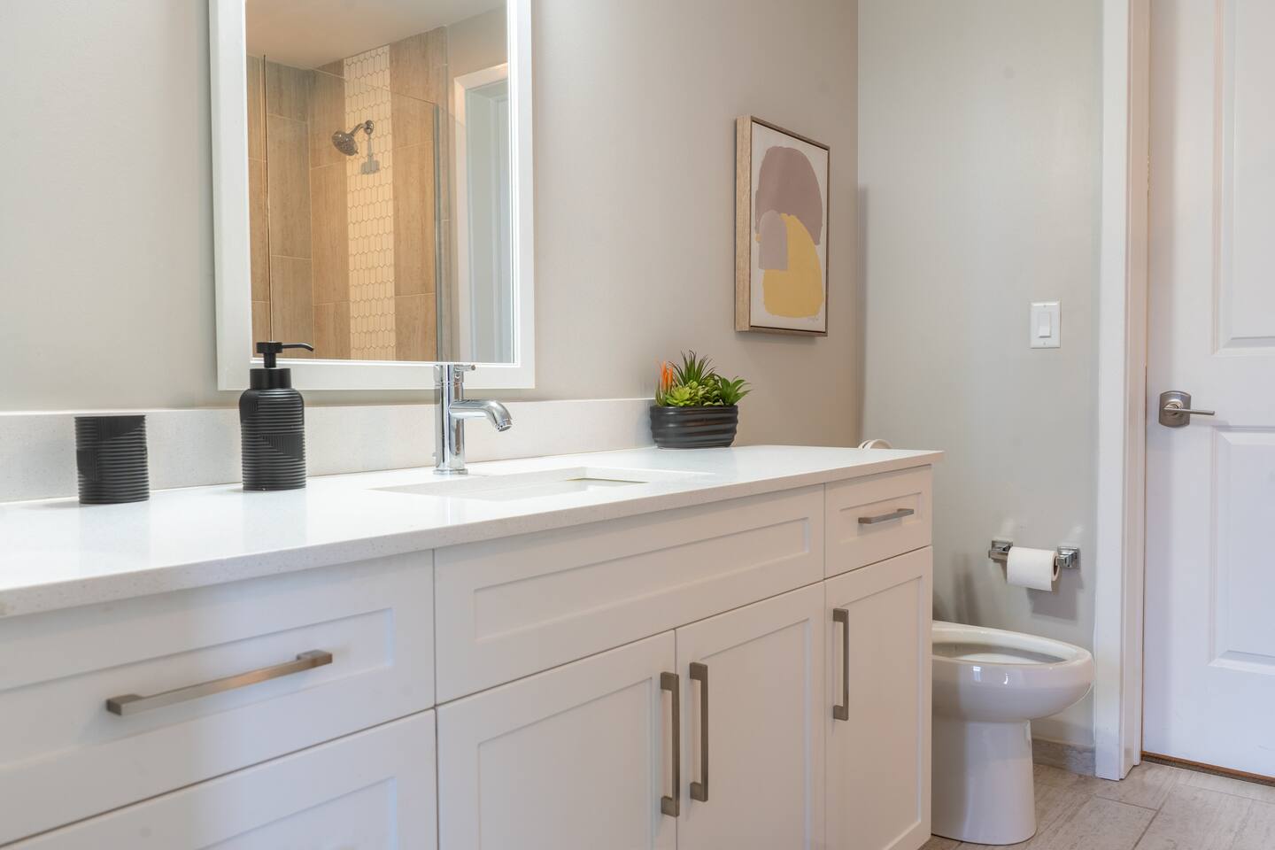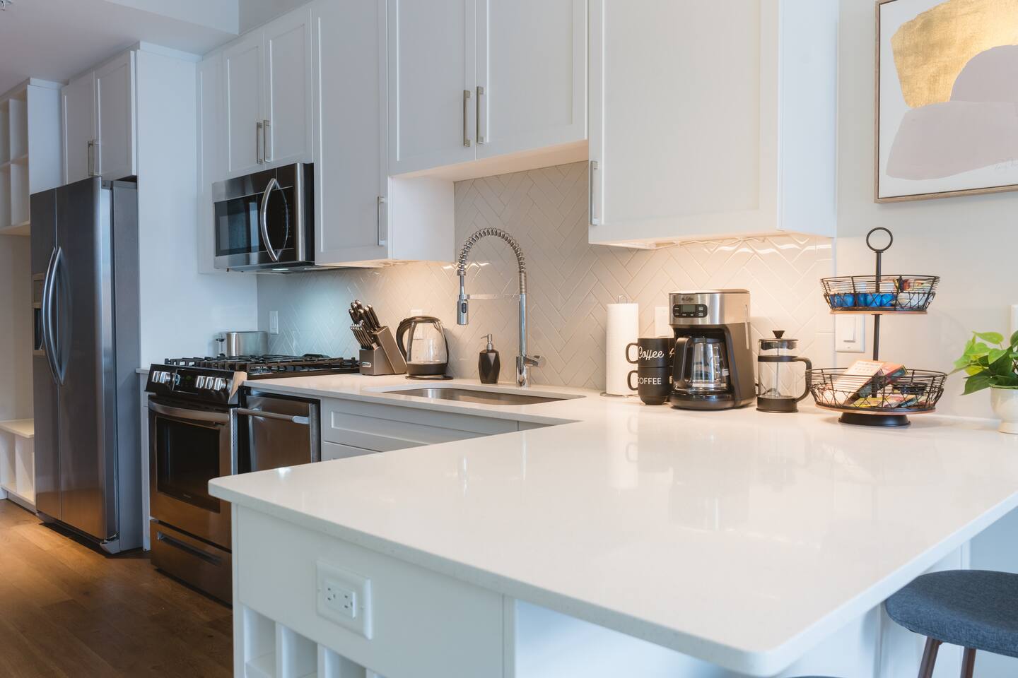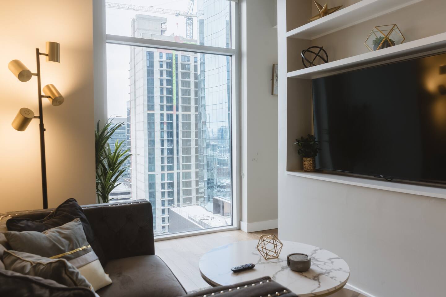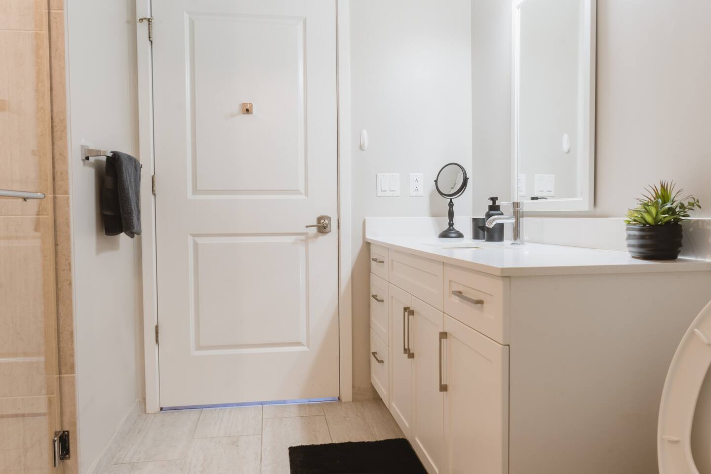 This studio apartment is designed with the modern traveler in mind, offering a seamless blend of comfort, style, and convenience. Whether you're here for work, leisure, or anything in between. The Building Located in The Gulch neighborhood, this high-rise apartment building offers the perfect combination of sophistication and modern comfort with premier amenities in an unparalleled location. The building boasts 24/7 concierge service and security, ensuring a safe and secure living experience. Kitchen As you enter, you're greeted by an urban mudroom and a fully equipped modern kitchen. Here you'll find everything you need from stainless steel appliances, a full size refrigerator, a gas range stove to a microwave. In the kitchen area, you’ll also find a large shelved pantry and the W/D unit. The coffee maker, toaster, blender, and water kettle sit alongside the countertops ready for any culinary needs. The kitchen is stocked with cookware, plate ware, and utensils. Perfect for preparing and enjoying meals at the bar top. Living Room The space flows seamlessly into a bright and inviting living room, complete with 11ft. floor-to ceiling windows with roller-shade coverings, a comfortable plush sofa that entices you to relax and unwind, and a 65" Roku smart TV for streaming your favorite shows or watching a movie. Adjacent to the living area is a built-in desk, perfect for those who need a quiet spot to work or study with high-speed Wi-Fi access. Bedroom The bedroom is your private oasis, featuring a comfortable queen-sized bed with premium bedding and soft pillows, ensuring a peaceful night's sleep. Large 11ft. windows fill the room with natural light, while roller shade curtains provide privacy and tranquility. Elegant bedside nightstands with soft dimmable lamps offer a touch of warmth and a 65” Roku smart TV for streaming TV shows or watching a movie in bed. Bathroom The bathroom features modern fixtures, a walk-in shower and soft towels to create a spa-like environment. Closet The walk-in closet has ample space and a dresser to store your belongings, making it easy to settle in and feel at home.