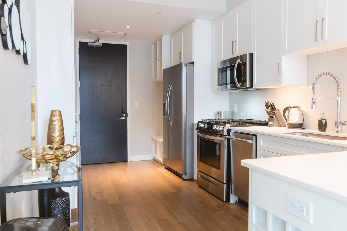 During your stay, you'll enjoy full access to the apartment and the building's exceptional amenities, including: 26th-Floor Sky Lounge - Breathtaking skyline views, perfect for relaxing or working remotely Resort-Style Pool - 70-foot lap pool with private cabanas and sun deck Fitness Center & Spin Studio - Fully equipped gym, spin bikes, and outdoor yoga lawn Dog Run & Pet Spa - Onsite dog park with agility equipment and a pet washing station Outdoor Fire Pit & Grilling Areas - Ideal for evening gatherings or casual meals Whole Foods Market (Onsite) - Located on the ground floor for ultimate convenience Smart Package Lockers - Secure 24/7 package and dry cleaning pickup Secure Garage Parking - Available upon request (subject to availability) EV Charging Stations - Onsite for electric vehicles 24-Hour Concierge - Assistance, security, and peace of mind around the clock Guests will also have access to the main lobby, elevators, mailroom, and any designated business or lounge areas offered within the community.