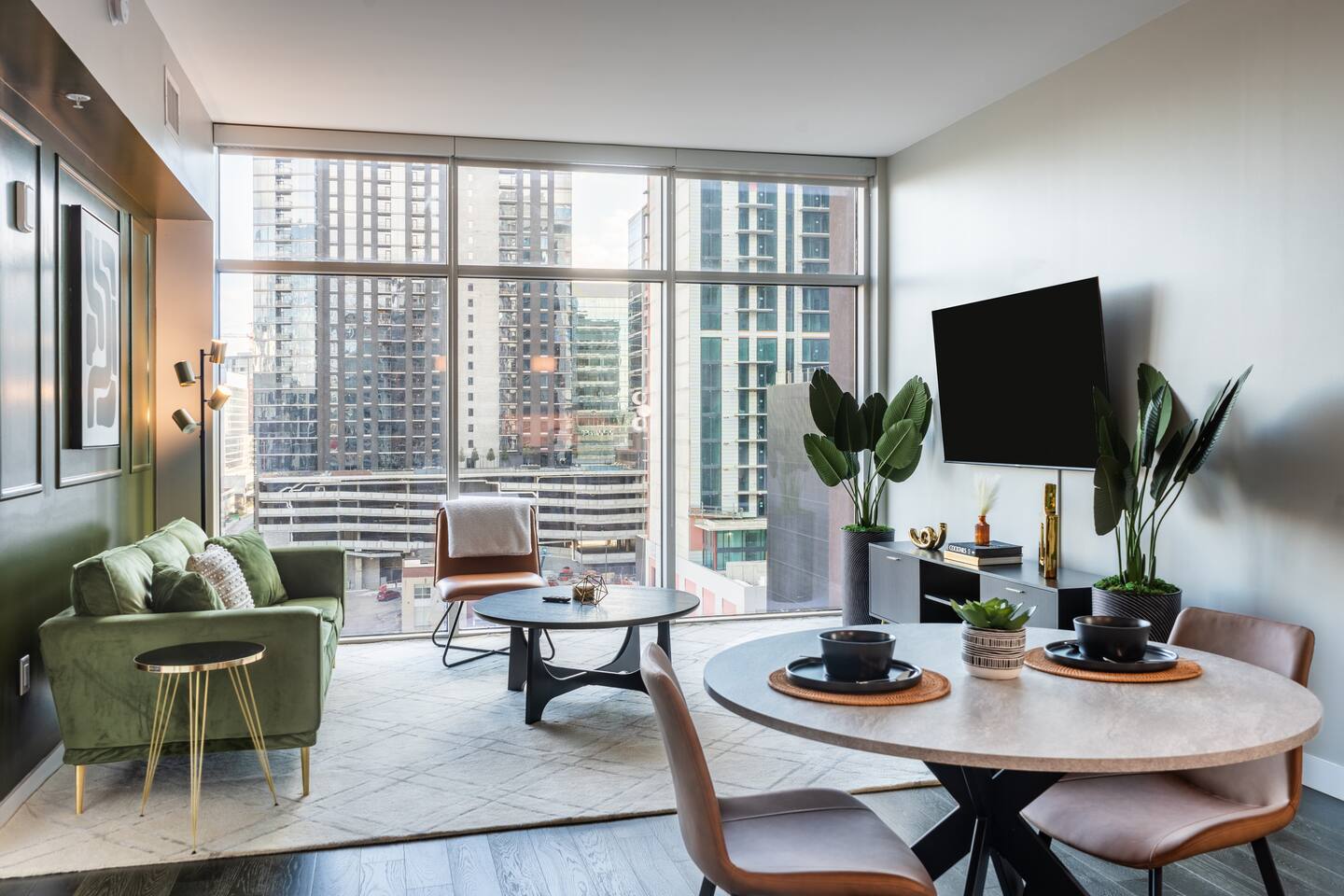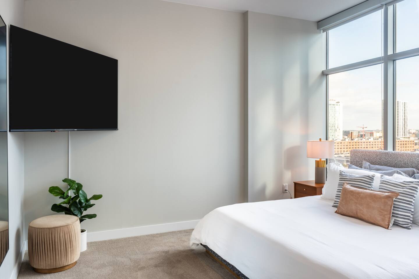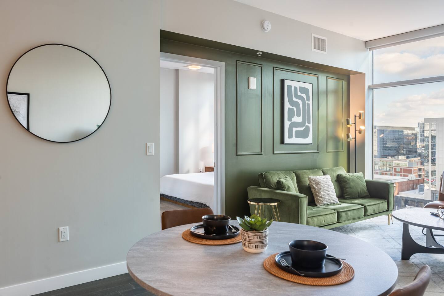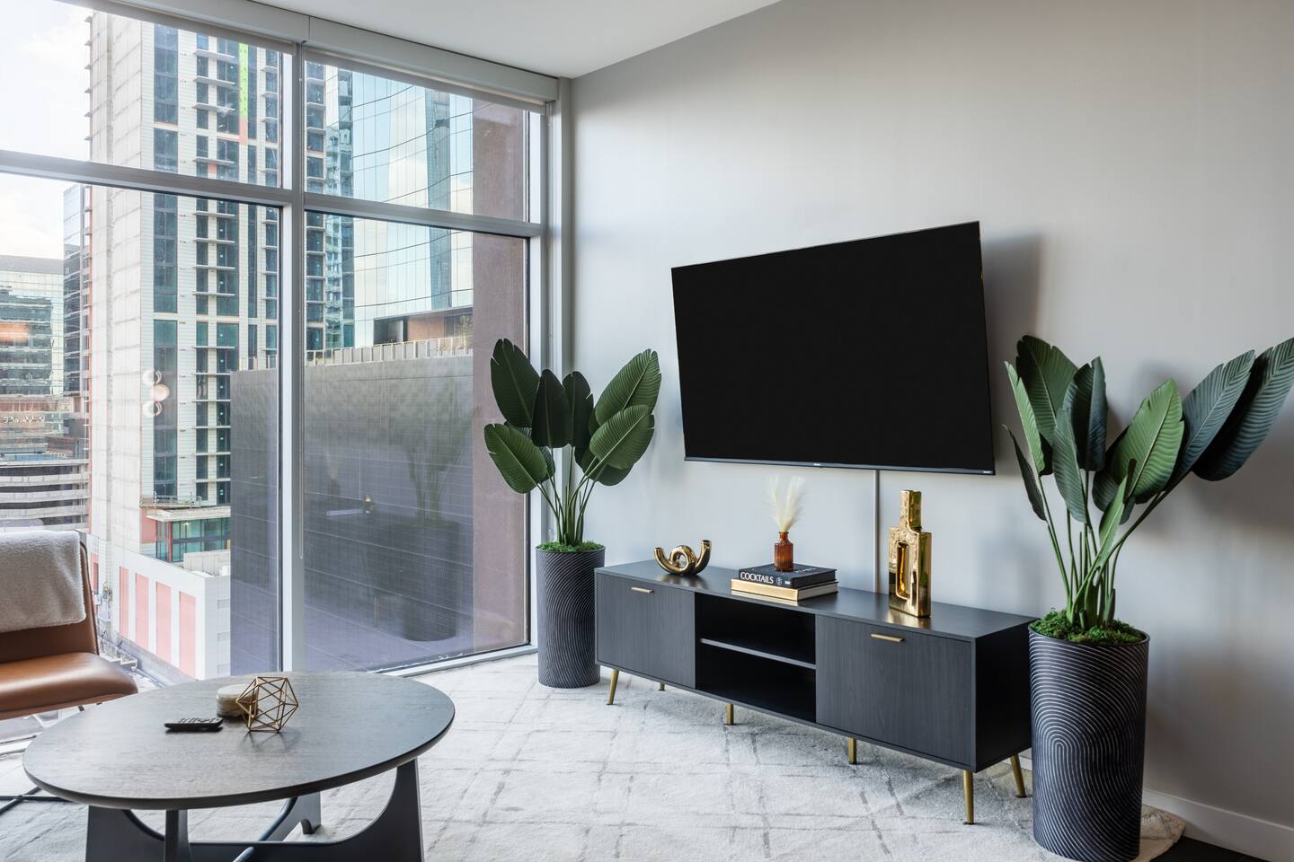 This apartment was designed with the modern traveler in mind, offering a seamless blend of comfort, style, and convenience. Whether you're here for work, leisure, or anything in between. The Building Located in The Gulch neighborhood, this high-rise apartment building offers the perfect combination of sophistication and modern comfort with premier amenities in an unparalleled location. The building boasts 24/7 concierge service and security, ensuring a safe and secure living experience. Kitchen As you enter, you're greeted by an urban mudroom and a fully equipped modern kitchen. Here you'll find everything you need from stainless steel appliances, a full size refrigerator, a gas range stove to a microwave. In the kitchen area, you’ll also find a large shelved pantry and the W/D unit. The coffee maker, toaster, blender, and water kettle sit alongside the countertops ready for any culinary needs. The kitchen is stocked with cookware, plate ware, and utensils. Perfect for preparing and enjoying meals at the bar top. Living Room The space flows seamlessly into a bright, inviting dining room and living room complete with 11ft. floor-to ceiling windows with roller-shade coverings, a round dining table set, a comfortable plush sofa that entices you to relax and unwind, and a 65" Roku smart TV for streaming your favorite shows or watching a movie. In the living area is a desk, perfect for those who need a quiet spot to work or study with high-speed Wi-Fi access. Bedroom The bedroom is your private oasis, featuring a comfortable King-sized bed with premium bedding and soft pillows, ensuring a peaceful night's sleep. Large 11ft. windows fill the room with natural light, while roller shade curtains provide privacy and tranquility. Elegant bedside nightstands with soft dimmable lamps offer a touch of warmth and a 65” Roku smart TV for streaming TV shows or watching a movie in bed. Bathroom The bathroom features modern fixtures, a walk-in shower and soft towels to create a spa-like environment. Closet The walk-in closet has ample space and a dresser to store your belongings, making it easy to settle in and feel at home. Laundry The unit has its own Washer and Dryer.