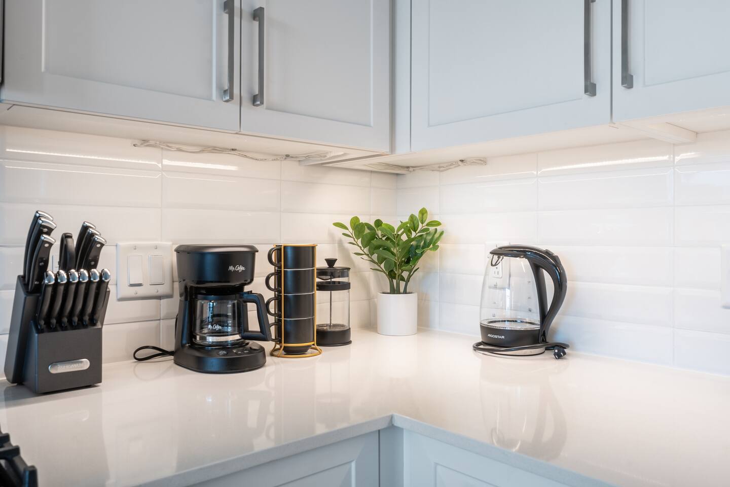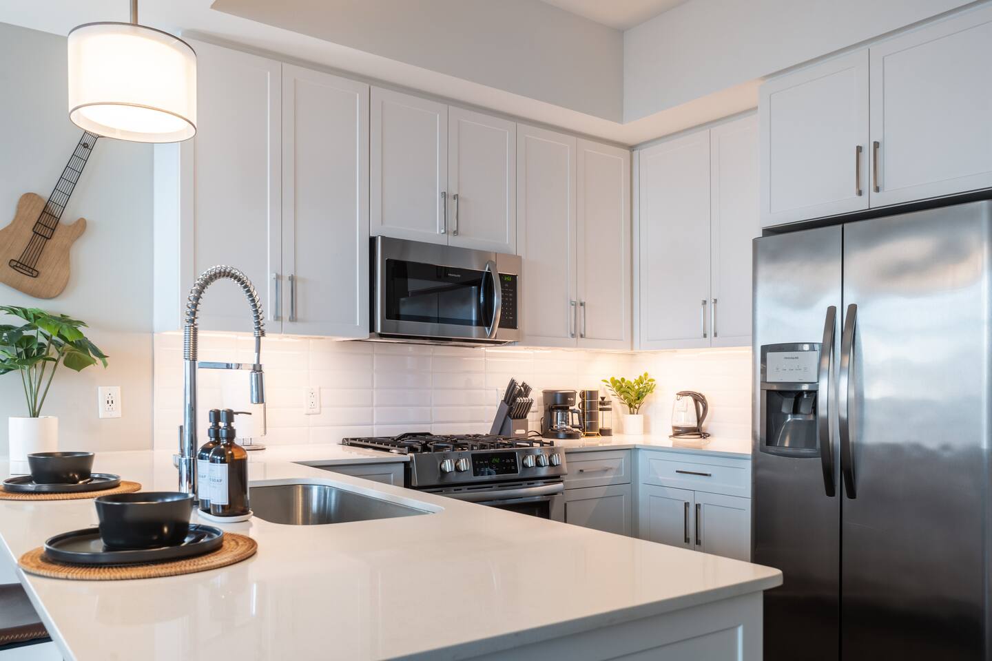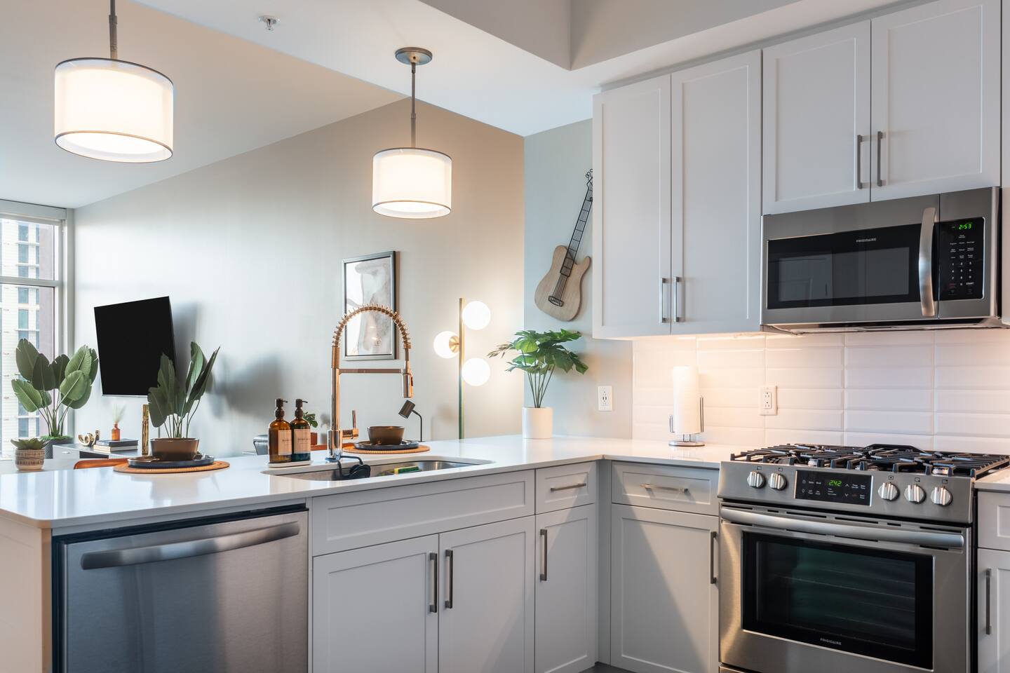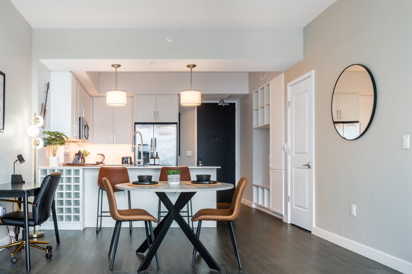This apartment was designed with the modern traveler in mind, offering a seamless blend of comfort, style, and convenience. Whether you're here for work, leisure, or anything in between. The Building Located in The Gulch neighborhood, this high-rise apartment building offers the perfect combination of sophistication and modern comfort with premier amenities in an unparalleled location. The building boasts 24/7 concierge service and security, ensuring a safe and secure living experience. Kitchen As you enter, you're greeted by an urban mudroom and a fully equipped modern kitchen. Here you'll find everything you need from stainless steel appliances, a full size refrigerator, a gas range stove to a microwave. In the kitchen area, you’ll also find a large shelved pantry and the W/D unit. The coffee maker, toaster, blender, and water kettle sit alongside the countertops ready for any culinary needs. The kitchen is stocked with cookware, plate ware, and utensils. Perfect for preparing and enjoying meals at the bar top. Living Room The space flows seamlessly into a bright, inviting dining room and living room complete with 11ft. floor-to ceiling windows with roller-shade coverings, a round dining table set, a comfortable plush sofa that entices you to relax and unwind, and a 65" Roku smart TV for streaming your favorite shows or watching a movie. In the living area is a desk, perfect for those who need a quiet spot to work or study with high-speed Wi-Fi access. Bedroom The bedroom is your private oasis, featuring a comfortable King-sized bed with premium bedding and soft pillows, ensuring a peaceful night's sleep. Large 11ft. windows fill the room with natural light, while roller shade curtains provide privacy and tranquility. Elegant bedside nightstands with soft dimmable lamps offer a touch of warmth and a 65” Roku smart TV for streaming TV shows or watching a movie in bed. Bathroom The bathroom features modern fixtures, a walk-in shower and soft towels to create a spa-like environment. Closet The walk-in closet has ample space and a dresser to store your belongings, making it easy to settle in and feel at home. Laundry The unit has its own Washer and Dryer.