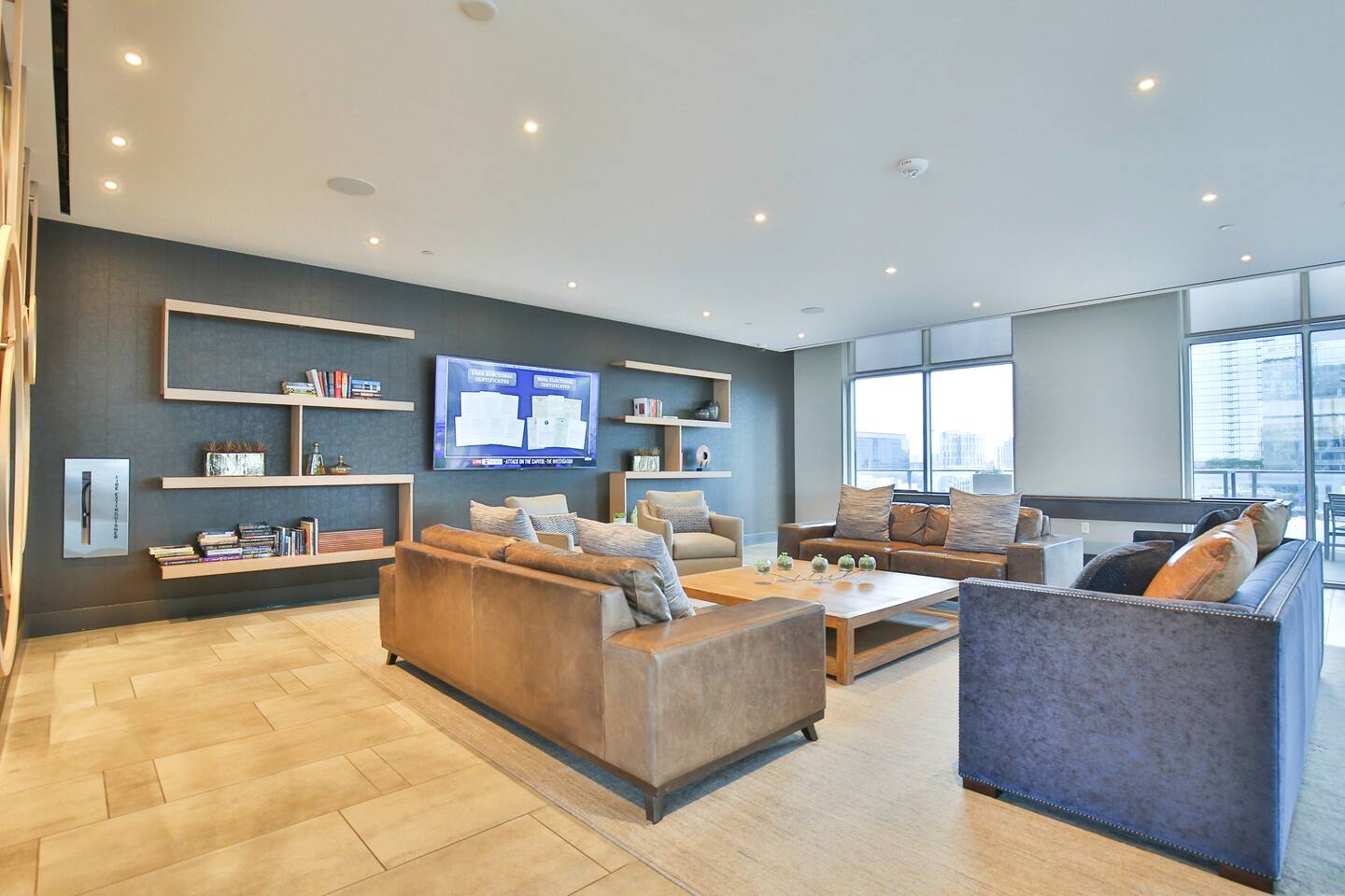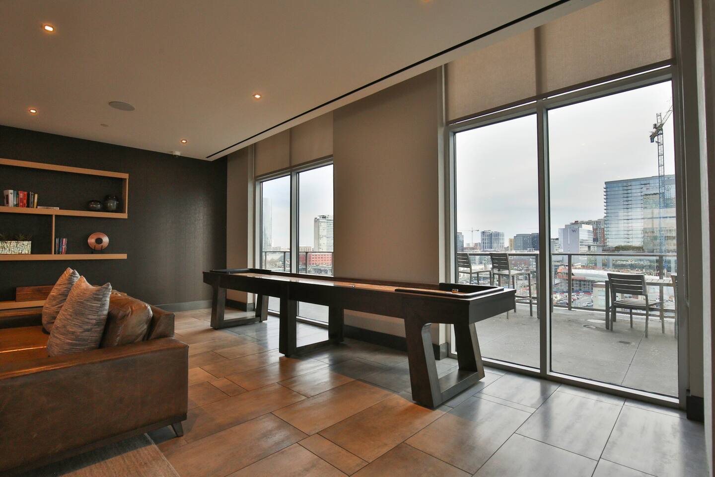 During your stay, you'll enjoy full access to the apartment and the building's exceptional amenities, including: 26th-Floor Sky Lounge - Breathtaking skyline views, perfect for relaxing or working remotely Resort-Style Pool - 70-foot lap pool with private cabanas and sun deck Fitness Center & Spin Studio - Fully equipped gym, spin bikes, and outdoor yoga lawn Dog Run & Pet Spa - Onsite dog park with agility equipment and a pet washing station Outdoor Fire Pit & Grilling Areas - Ideal for evening gatherings or casual meals Whole Foods Market (Onsite) - Located on the ground floor for ultimate convenience Smart Package Lockers - Secure 24/7 package and dry cleaning pickup Secure Garage Parking - Available upon request (subject to availability) EV Charging Stations - Onsite for electric vehicles 24-Hour Concierge - Assistance, security, and peace of mind around the clock Guests will also have access to the main lobby, elevators, mailroom, and any designated business or lounge areas offered within the community.