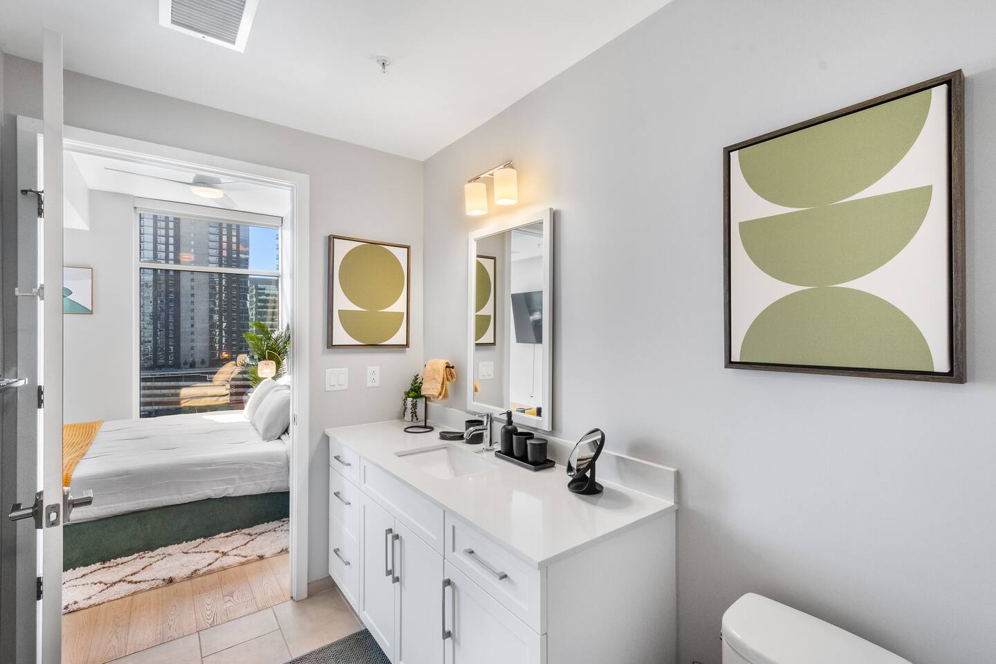 During your stay, you'll enjoy full access to the apartment and the building's exceptional amenities, including: 26th-Floor Sky Lounge. Breathtaking skyline views, perfect for relaxing or working remotely Resort-Style Pool. 70-foot lap pool with private cabanas and sun deck Fitness Center & Spin Studio. Fully equipped gym, spin bikes, and outdoor yoga lawn Dog Run & Pet Spa. Onsite dog park with agility equipment and a pet washing station Outdoor Fire Pit & Grilling Areas. Ideal for evening gatherings or casual meals Whole Foods Market (Onsite). Located on the ground floor for ultimate convenience Smart Package Lockers. Secure 24/7 package and dry cleaning pickup Secure Garage Parking. Available upon request (subject to availability) EV Charging Stations. Onsite for electric vehicles 24-Hour Concierge. Assistance, security, and peace of mind around the clock Guests will also have access to the main lobby, elevators, mailroom, and any designated business or lounge areas offered within the community.