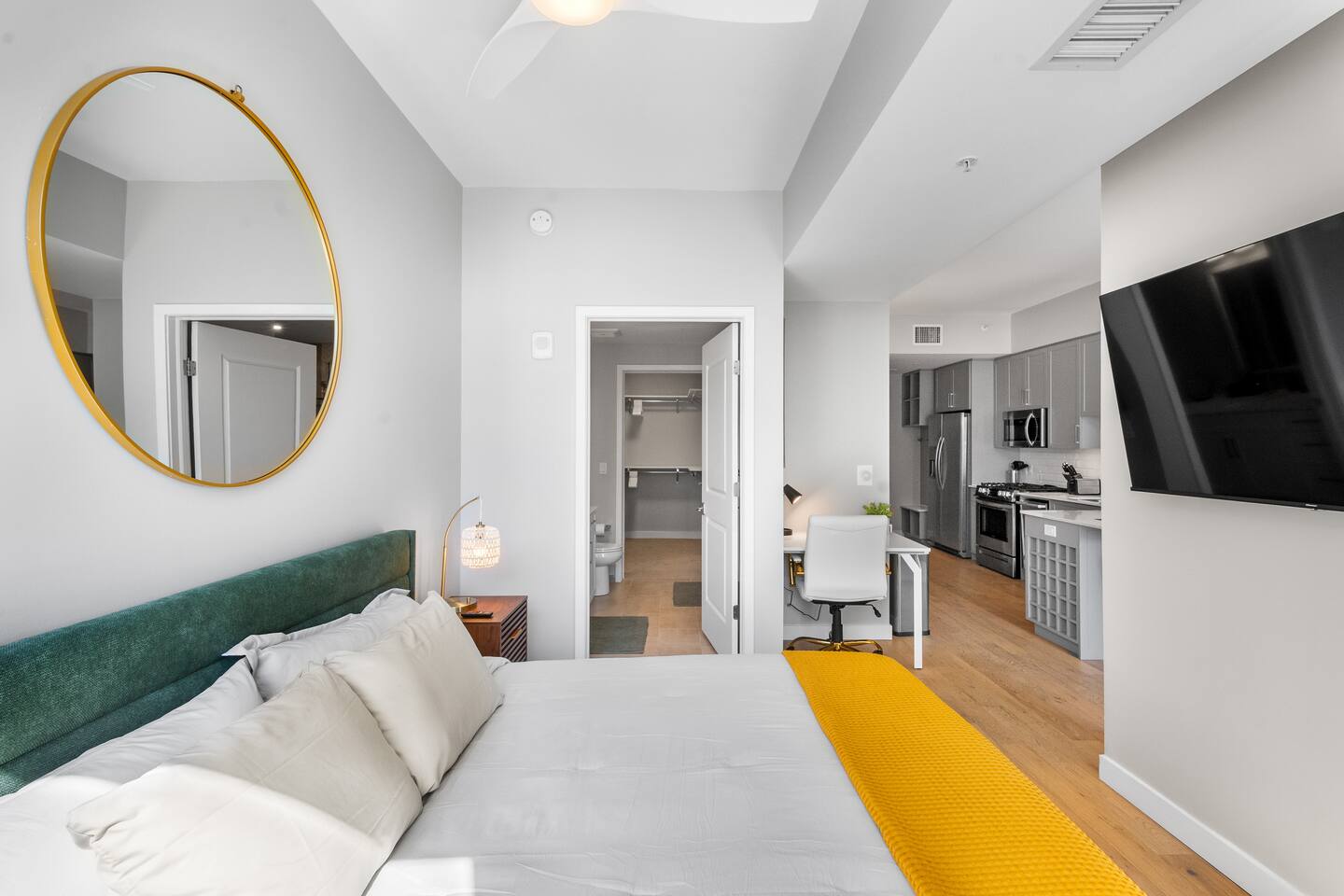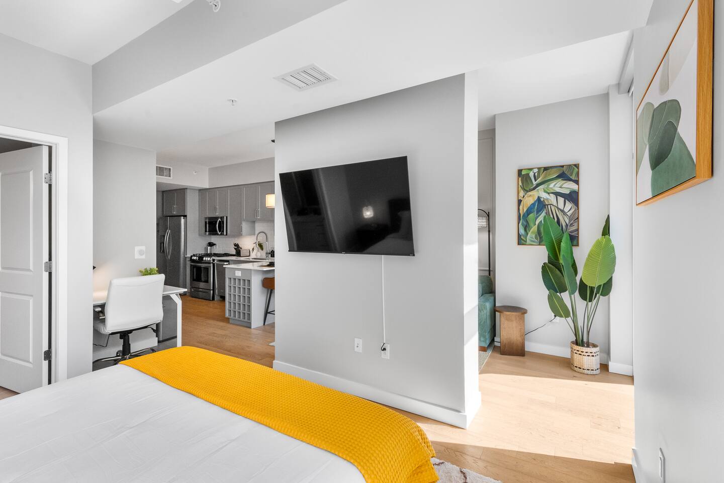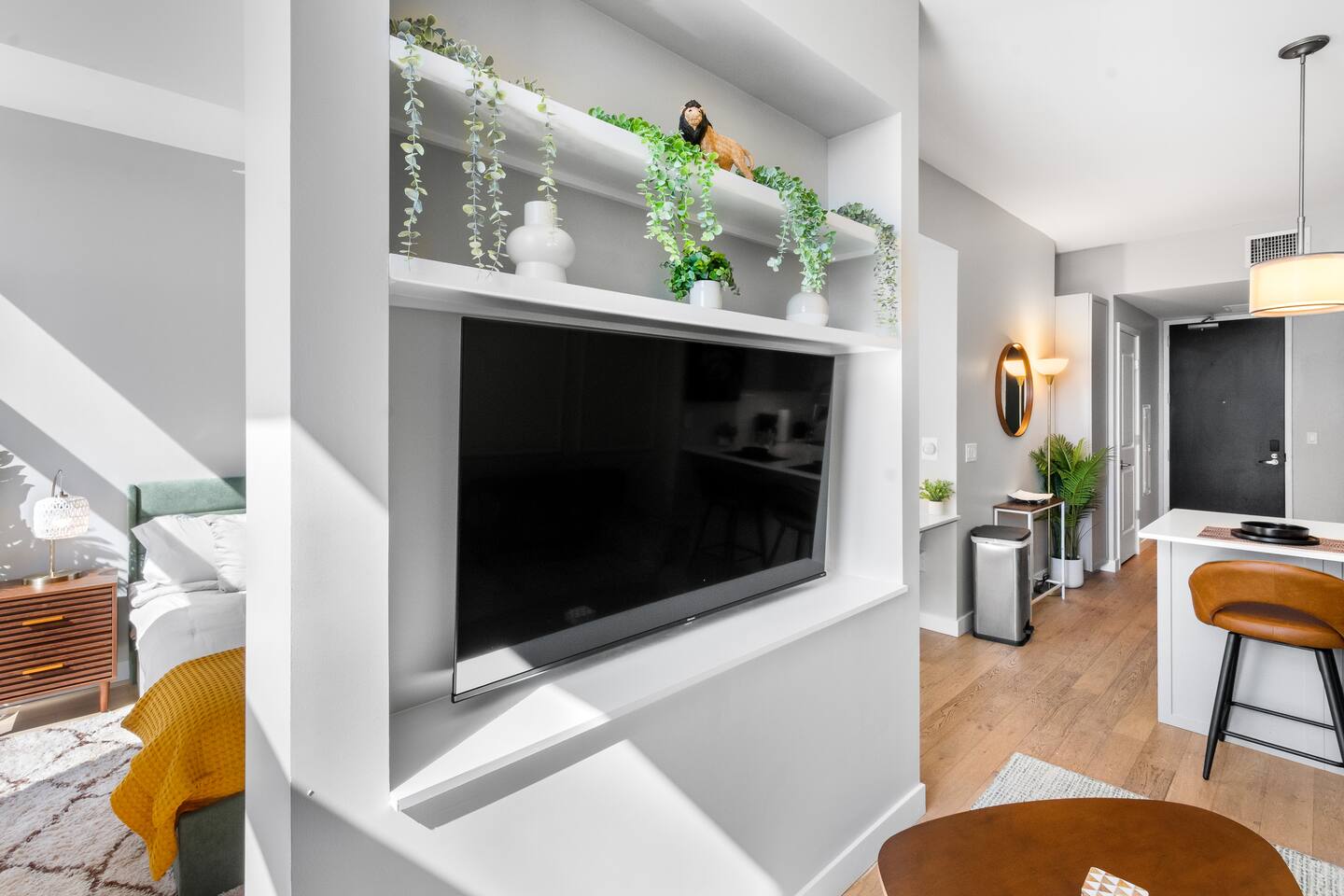 Welcome to your modern studio apartment home on the iconic Broadway Street in the heart of Nashville! This studio is perfect for professionals, couples, relocations, digital nomads, remote workers, students, interns and is connected to a Whole Foods Market! Enjoy a comfortable King bed, fully equipped kitchen, high-speed Wi-Fi, dedicated workspace, in-unit laundry, free parking, gym and top notch amenities. Ideal for extended stays. Send me a message for any questions about the unit or property!